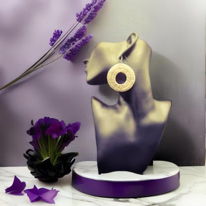 Créoles sans armature crochetées entièrement à la main, 9 cm. Plusieurs tailles et  coloris disponibles.