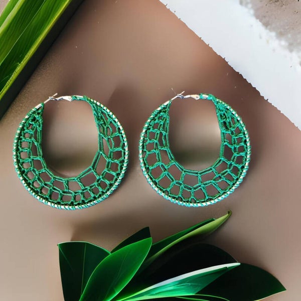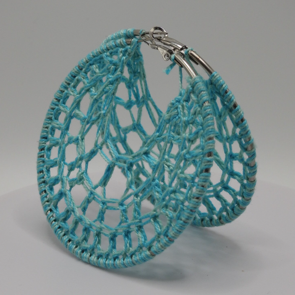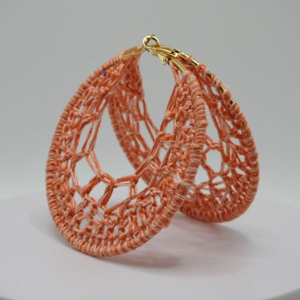 Créoles entièrement crochetées à la main. Plusieurs tailles et coloris disponibles.
