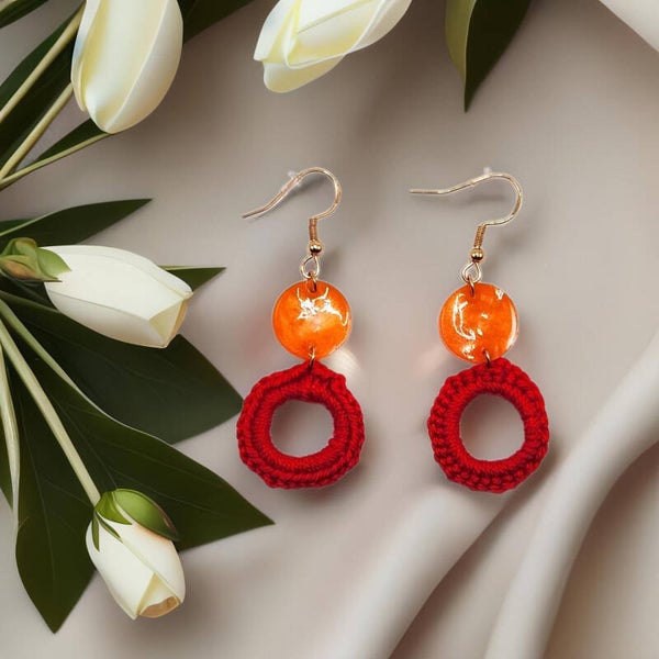 Petites boucles d'oreilles au crochet et résine UV époxy SEVES D'AUTOMNE