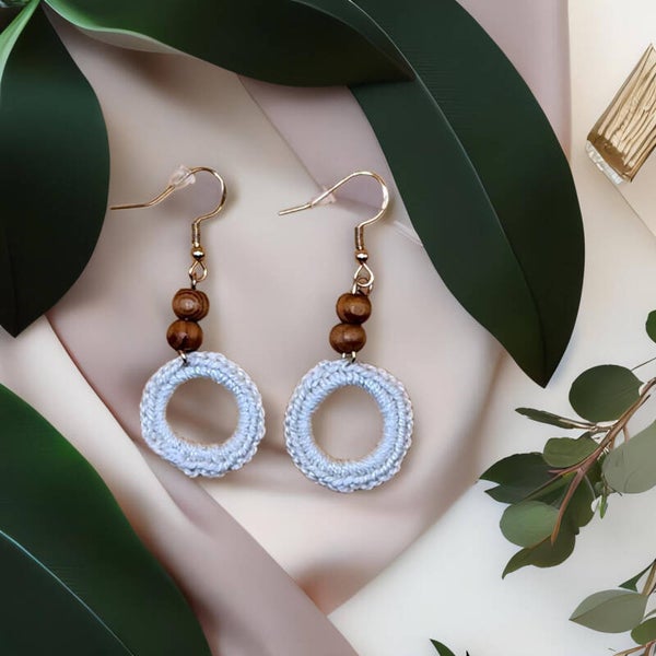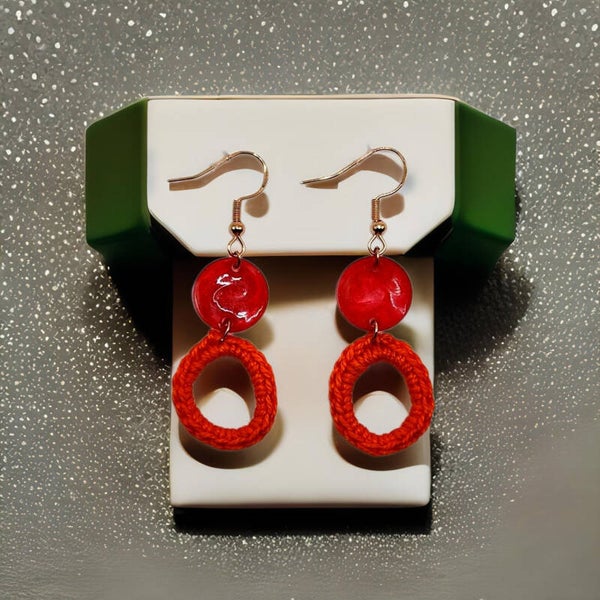 Petites boucles en résine époxy UV* ou perles de bois et crochetées. Entièrement faites à la main. Plusieurs coloris disponibles.